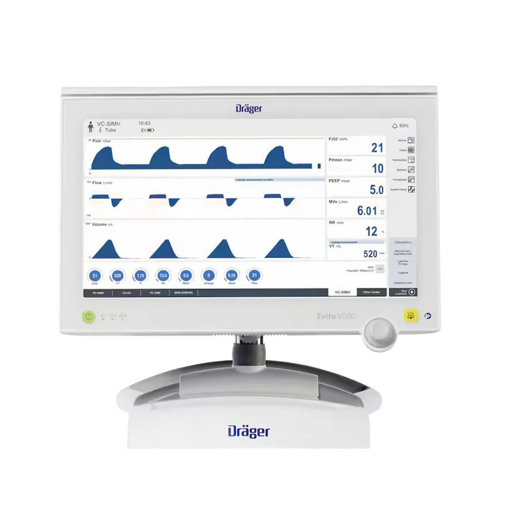 Аппарат ИВЛ Drager Evita V600 представляет собой сочетание высокоэффективной вентиляционной технологии и стильного дизайна, гарантирующего быстрое и эффективное функционирование, где в центре внимания всегда находится пациент.