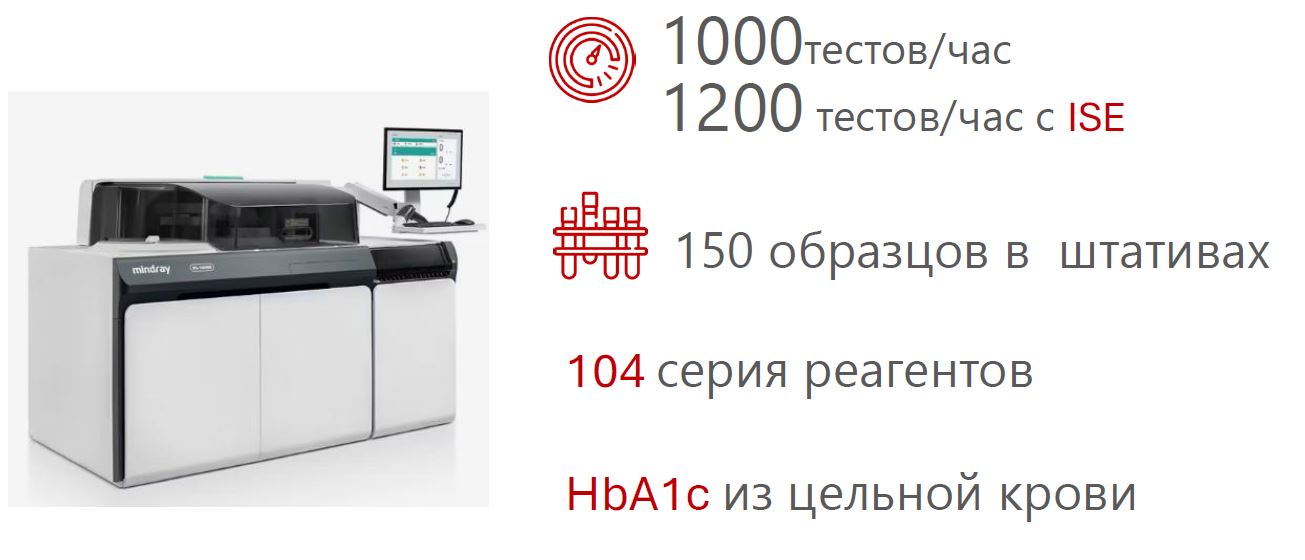 • 1000 фотометрических тестов/час; до 1200 тестов/час с ISE