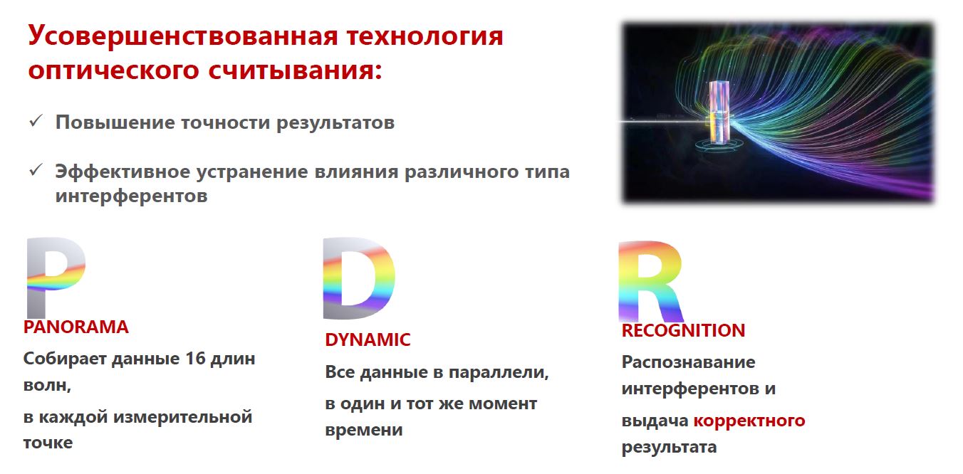 • Панорамный мониторинг результатов в режиме реаль-ного времени • Устранение влияния интер-ферентов • Стабильное повышение точности результатов