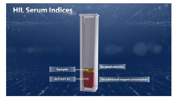 В новых моделях – не нужен и физ.раствор в случае, если для данной пробы есть заказ на АЛТ/АСТ, а определение HIL производится одновременно вместе с основным измерением, таким образом не снижается скорость исследования
